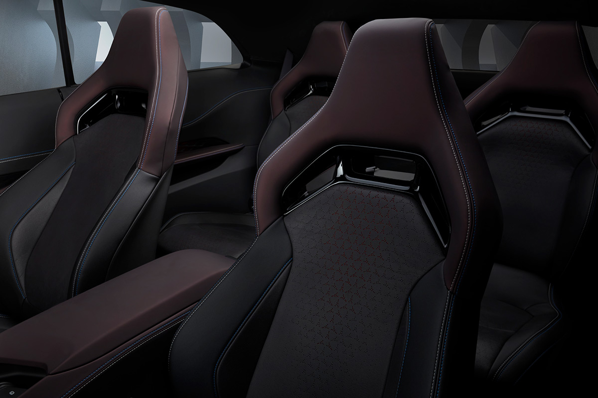 Doors and center console follow the sculptural design theme, including only the needed elements. A pass-through area under the console creates a much lighter feel, and clever center console touches include a jet-fighter inspired cap that flips up when engaging the start button. The unique pistol-grip shifter is inspired by the past but with a modern execution, functioning as a mechanical precision piece that delivers an effortless shift experience when squeezing the pistol grip’s trigger.