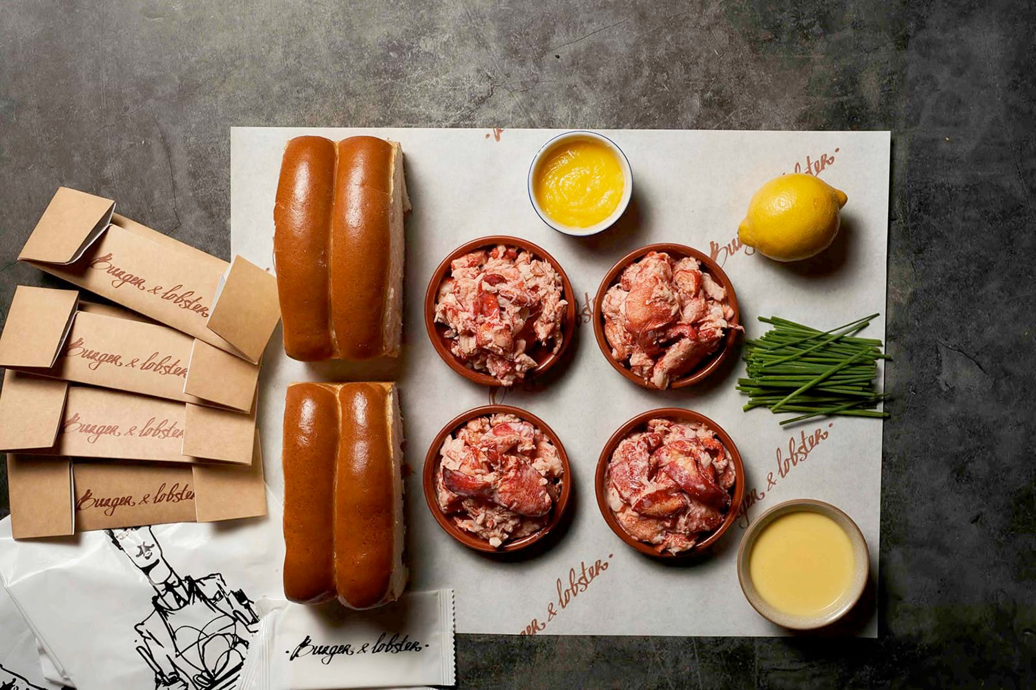- Original Lobster Rolls for 4, complete with lobster for four dressed in Japanese mayo and lemon and served with lemon and garlic butter in the brand’s signature brioche roll ($90.00)