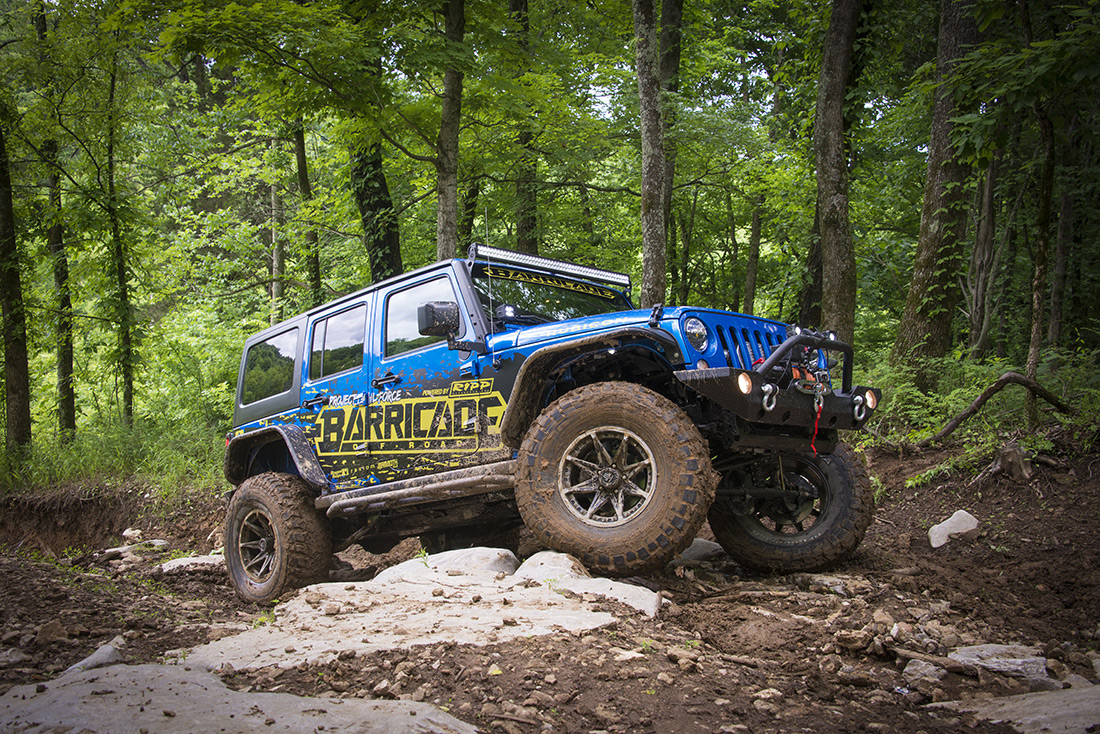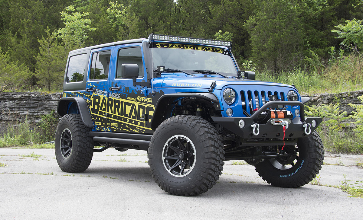 - Armor: The Barricade bumpers on this Jeep give improved approach and departure angles, as well as body protection on the trail. The Barricade Rock Sliders protect the rocker guards from rocks and stumps off-road, and their metal fender flares provide additional clearance for big tires.