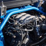 A Multimatic FEA-optimized full safety cage with integrated OE ACCRA tubes encases the two-passenger cockpit, which features a pair of race seats and Motec C187 display and CAN data acquisition system, with optional cloud-based data access.