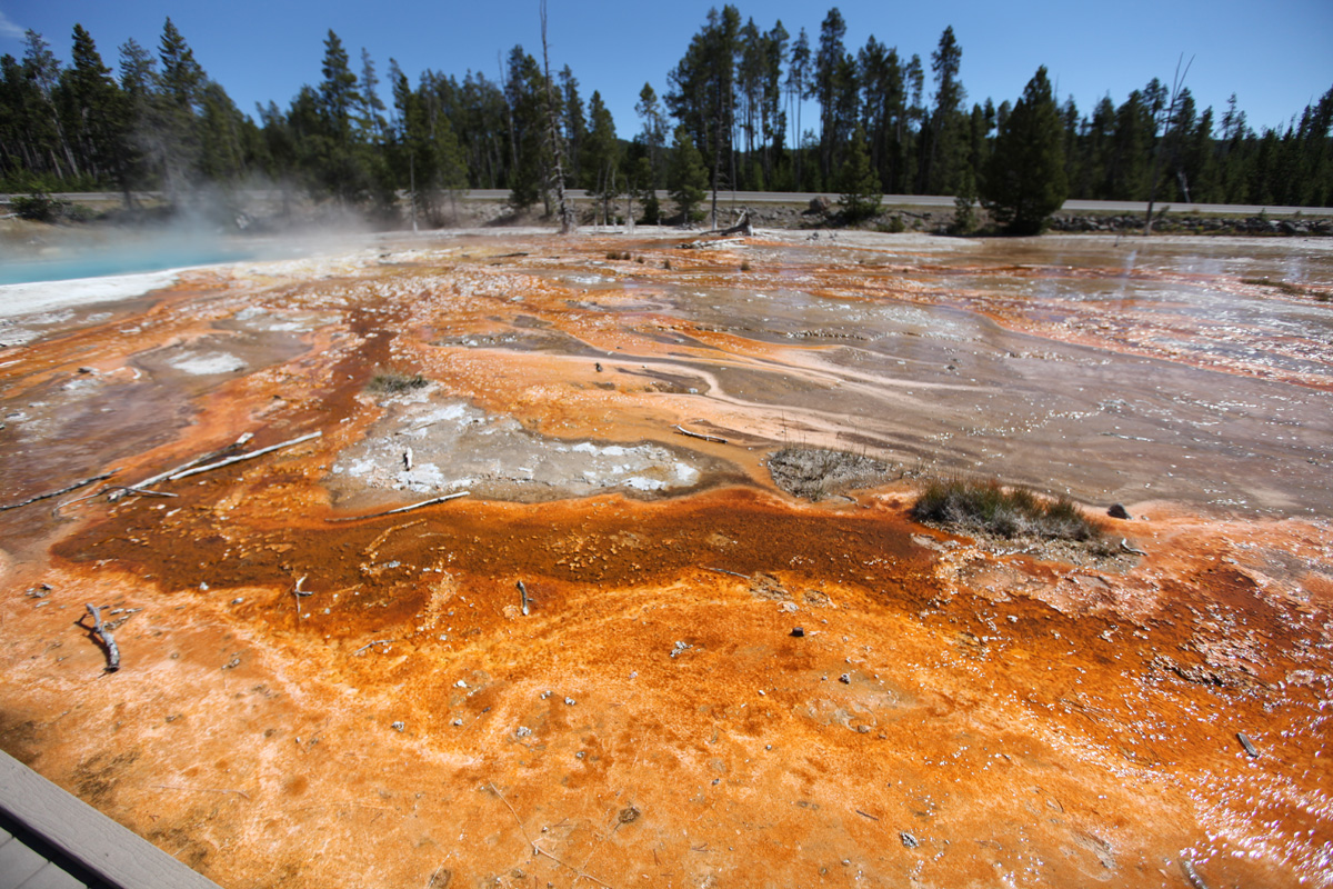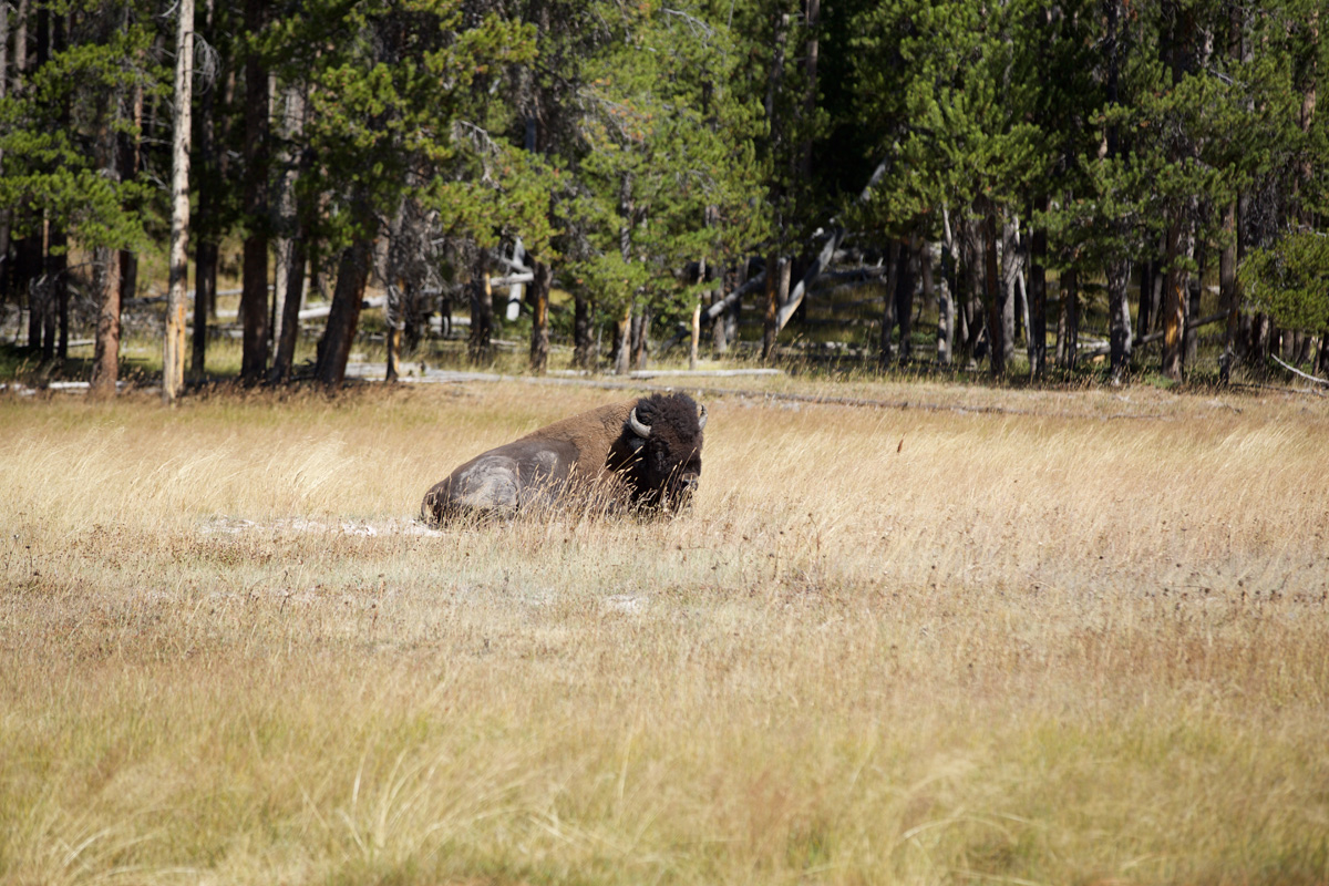 As we were leaving Old Faithful, a lone buffalo decided to cause a little traffic jam by crossing the road like he owned the place. It was incredible seeing this majestic beast just a few feet from us, and everyone whipped out their cameras to grab a shot.