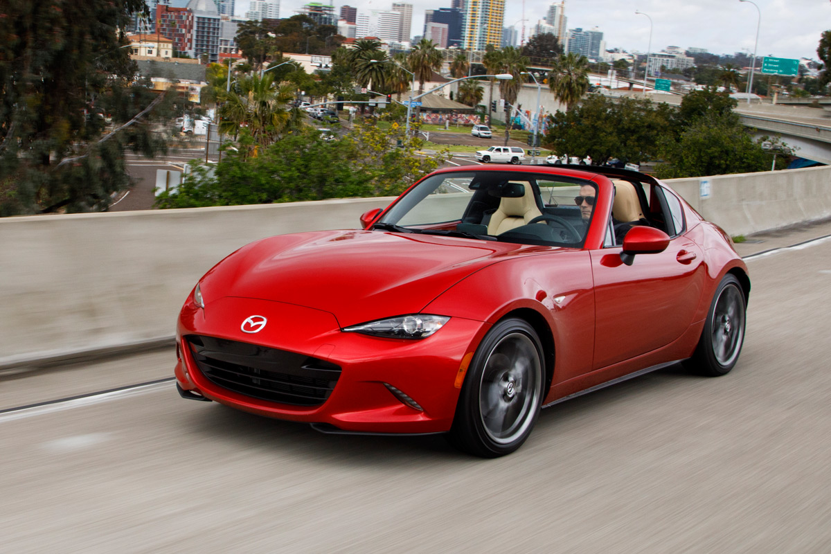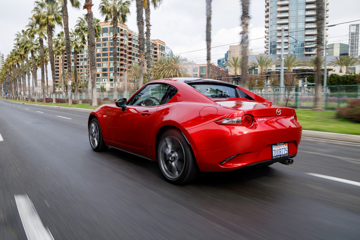 On the road, I thought the MX-5 RF drove just like the 2016 Mazda MX-5 Miata I tested awhile back, despite gaining 113 pounds due to the new roof panels and accompanying motors. To balance out the extra weight, Mazda engineers raised the pressure in the shocks and dialed the front stabilizer bar and rear springs. The steering calibration was also tweaked to reduce on-center friction and make it less twitchy.