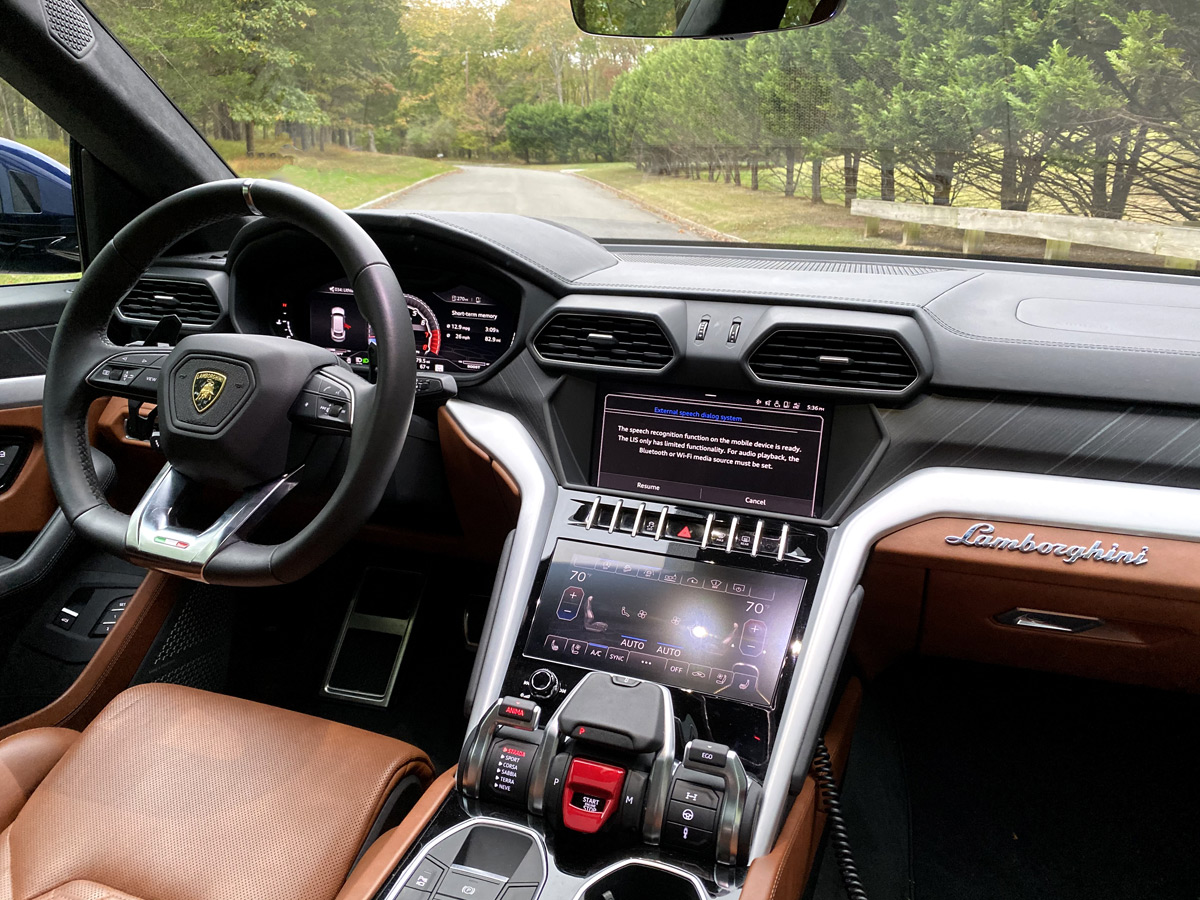 Around town, the Lamborghini Urus can be as docile or as angry as you desire, depending on which of the six drive modes (Strada, Sport, Corsa, Sabbia, Terra, Neve) you choose. In Strada (street) mode, the exhaust quiets down, and the suspension eases up. It’s great if you’re doing some highway miles and want to relax.