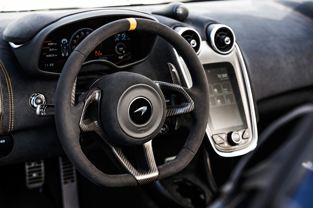 Sliding into the all-business interior of the 600LT lets you know that while this is a Spider, it’s still a performance, track-focused vehicle like the coupe. I found the seat firm but comfortable and the basic layout was similar to the other McLaren cars I have driven. The 600LT does not have the conversation-starting fold away track dash like the 720S does, but in my opinion, the 600LT’s clean interior is the best one yet from McLaren as far as functionality goes.