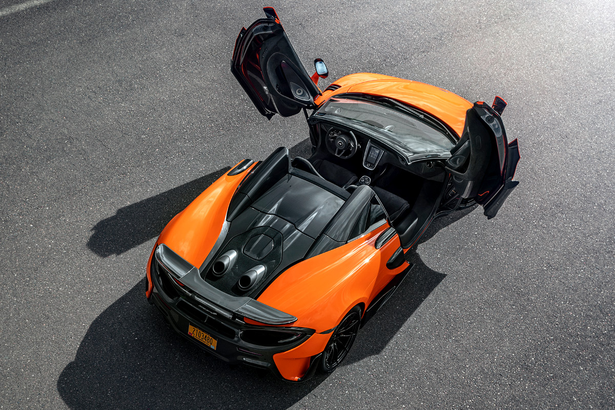 Having driven a few McLarens in the past (most recently the 570S Spider), I was rather excited to get behind the wheel of their new drop-top version of the 600LT. Not surprisingly McLaren took everything it learned from the 650S, 675LT, and 570S Spiders and applied it to the 600LT, making it lighter, faster, and better performing. In fact, the 600LT Spider is 220lbs lighter than the 570S Spider, and just 110lbs heavier than the 600LT Coupé.