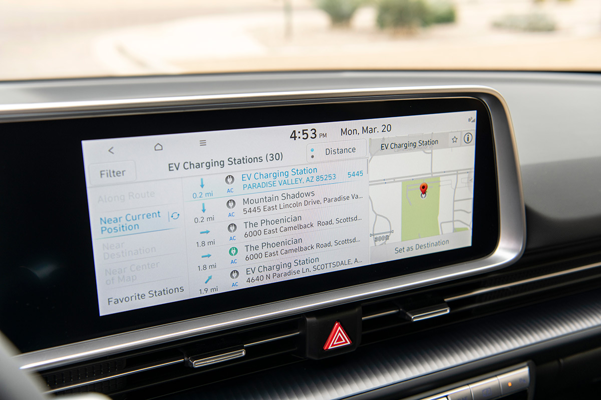 To complement its high-quality interior, Hyundai includes a host of useful tech touches. The center touch screen is completely separate from the EV’s HVAC controls which is the perfect way to set up a useful interior. You have all of the important knobs and switches you want, while still enjoying the flexibility of a touch screen.