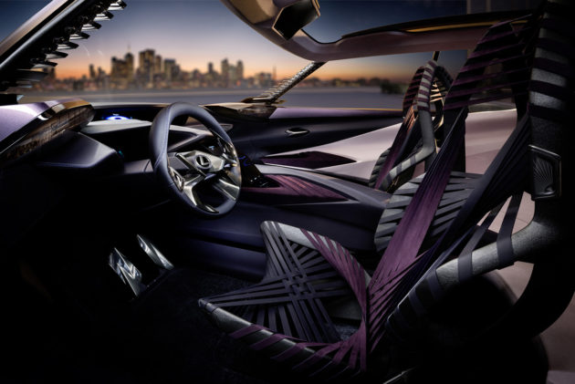 Beyond the dramatic exterior, the most striking bit of the UX Concept is probably the ‘Kinetic’ front seats, with frames that flex and move to keep you in the best position for support. They regard upholstery as terminally obsolete, instead using bands of stretchy silk-like material. It doesn’t look very comfortable, but who knows?