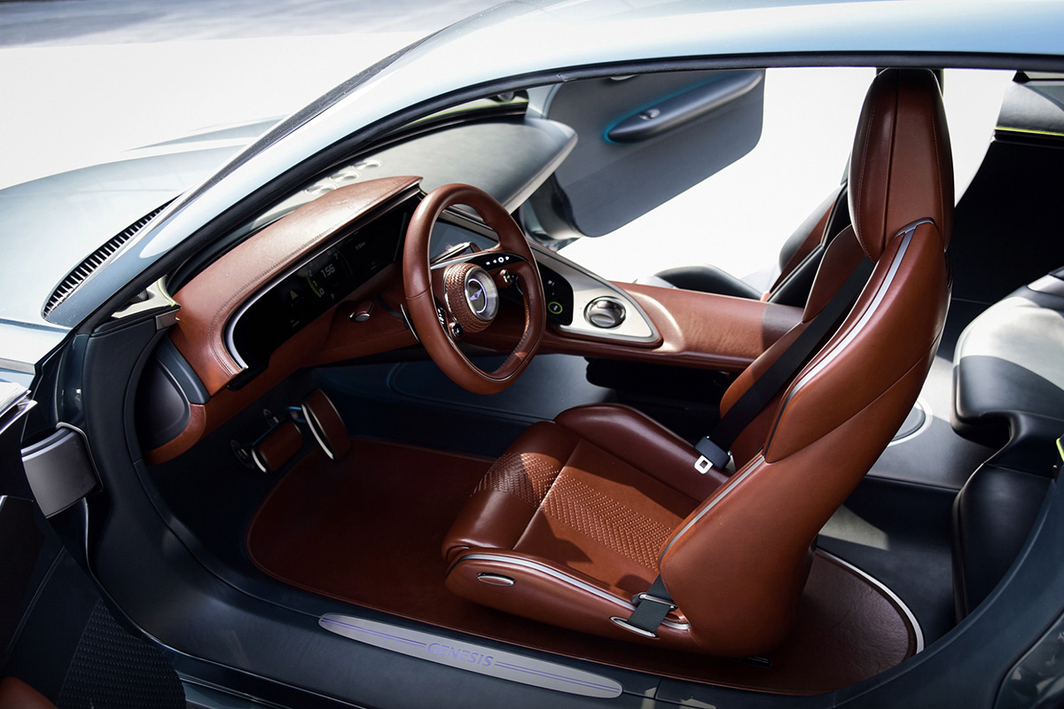 As for that stunning exterior color, the Genesis X Concept’s Lençóis Blue color was developed to express the level of sustainable luxury that Genesis pursues. It is inspired by the lagoons of Maranhenses National Park in Brazil, where a lake forms only during the rainy season. Inside, inspired by the Beauty of White Space, the interior features a driver-oriented design with a cockpit that surrounds the driver with all operating systems and displays.