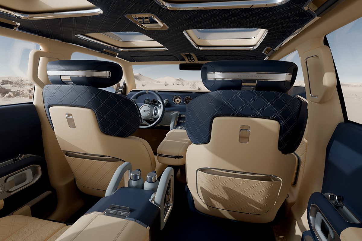 Genesis calls it “an exercise in harmonizing contrasts—combining elegance with ruggedness, and the spirit of exploration with refined comfort,” according to Luc Donckerwolke, Chief Creative Officer at Genesis.