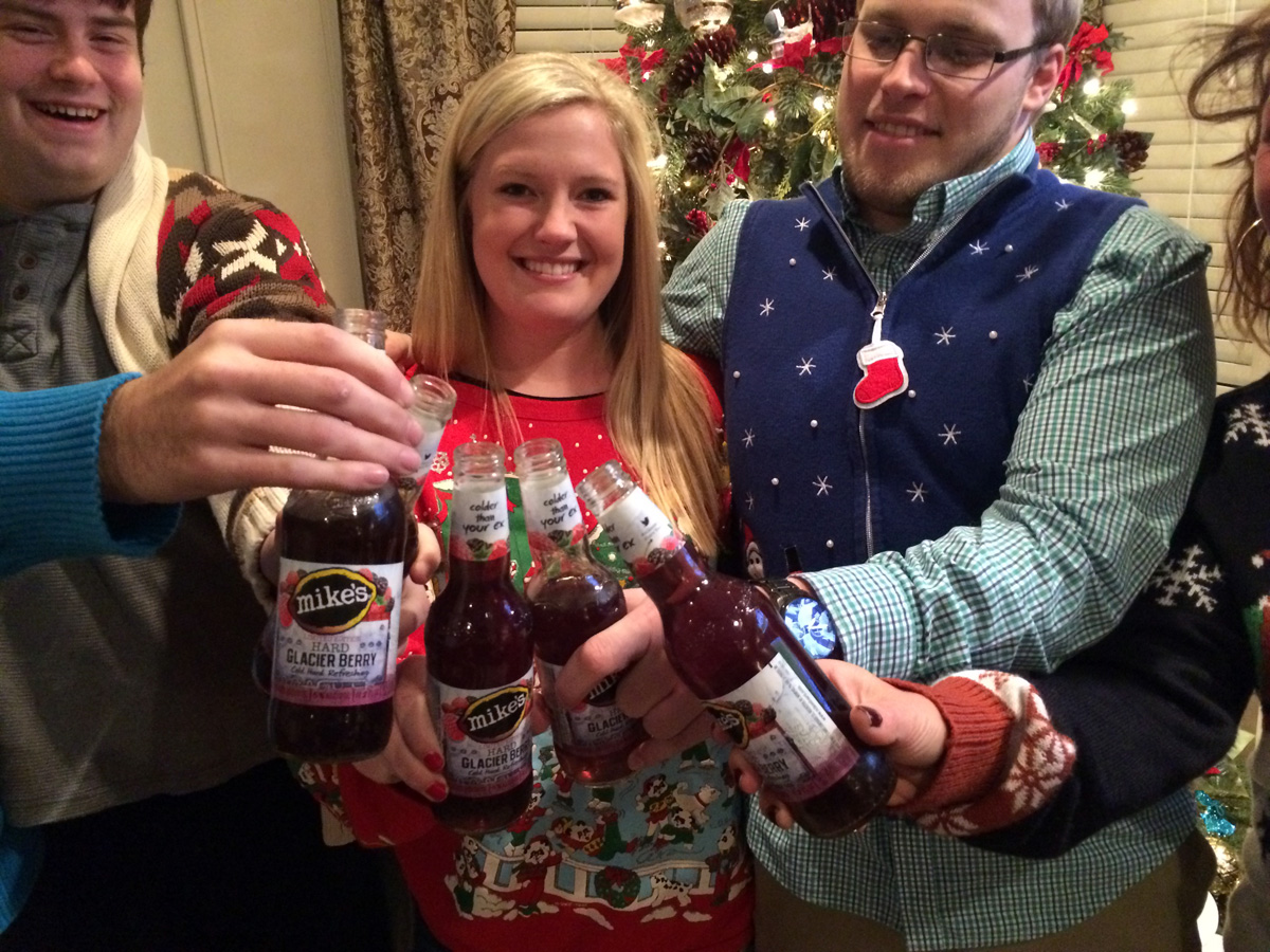 Honestly, it’s a great way to catch up with old friends and family in a casual setting, and everyone always has a blast. This year was no exception. We had tons of food (including some awesome ugly sweater cookies to keep with the theme), holiday music playing to get people in the spirit, the iconic Yule Log playing on the TV, and plenty of Mike’s Glacier Berry to go around.