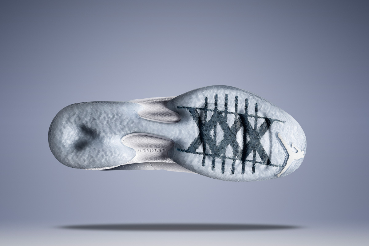 As you can see, the asymmetrical top line of the Air Jordan XXX, reminiscent of the XII, is formed by a first-of-its-kind Flyknit collar. The lenticular lens creates a breathable and abrasion-resistant toecap that features the Jumpman logo. The upper materials are inspired by MJ’s college uniform and give a nod to his North Carolina roots, with the jacquard construction creating an argyle pattern throughout the upper.