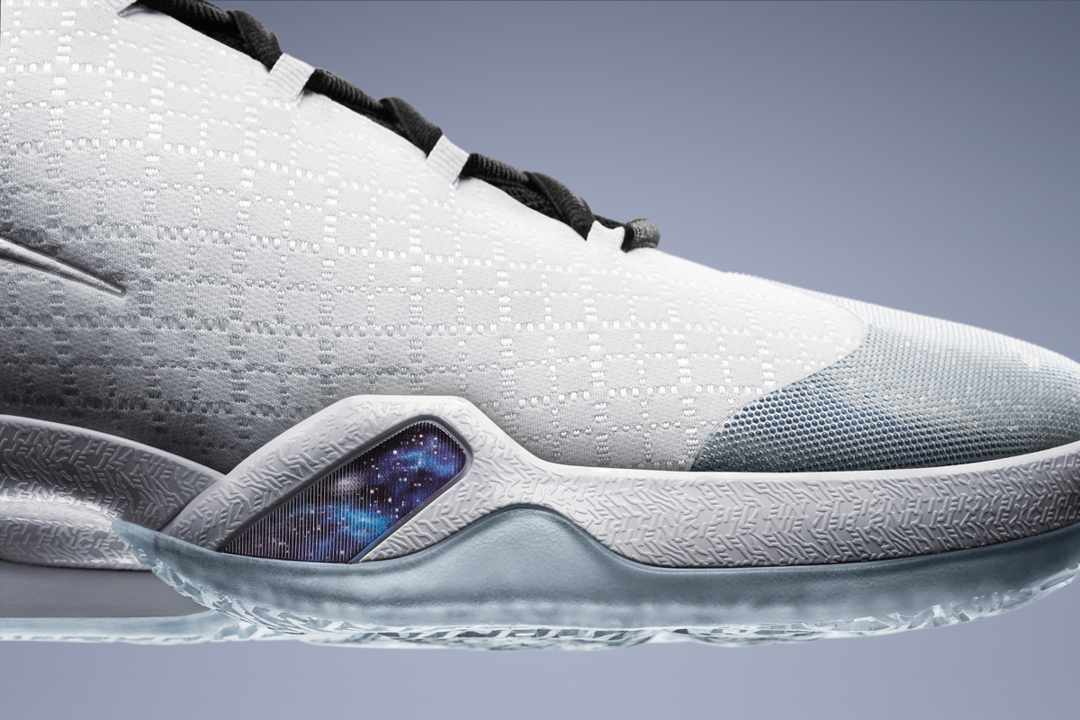That cosmos graphic on the midsole is meant to symbolize MJ as the Big Bang, igniting the globalization of basketball. And the XXX Roman numeral which is debossed on the heel celebrates the 30th anniversary of the Air Jordan franchise and is inspired by a basketball net.