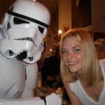 While we don’t know the backstory on these pictures, it appears that girls dig stormtroopers. So suit up and head out to the next sci-fi convention in search of your Princess Leia. (Or R2D2)