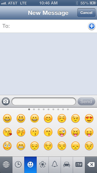 Now click on the globe icon, and you’ll see all the iPhone emoticons you can use.