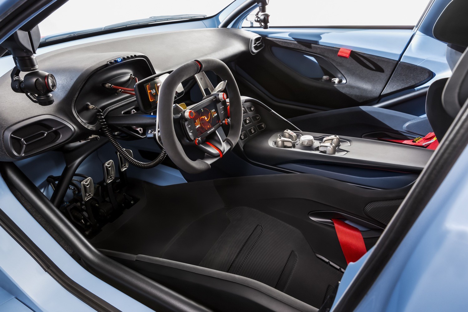 Hyundai designers took their inspiration from race cars, so the RN30’s interior is starkly furnished, with a roll cage, a pair of bucket seats, and a small digital display for the driver. 2 cameras on stabilizing gimbals are mounted on each of the A-pillars to capture the driver’s reactions, along with an external camera captures YouTube-ready race footage.