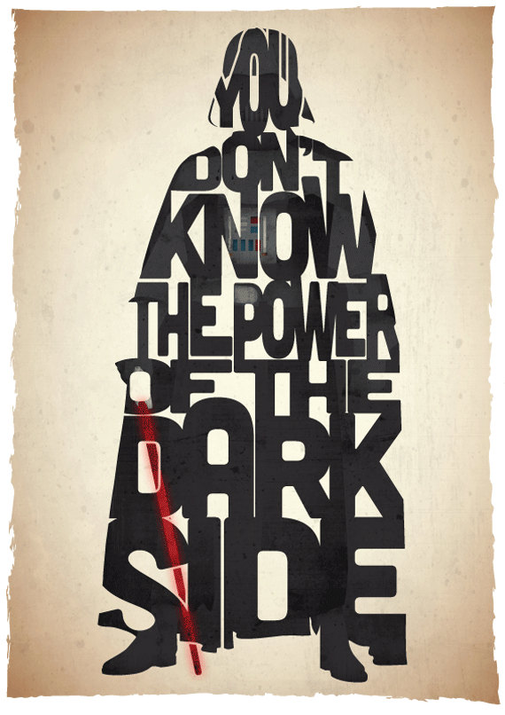 Designer Pete Ware has created an out-of-this-world series of typographic art designs, many featuring iconic characters from popular films with their notable quotes. These would be an awesome addition to any man cave or home theatre room!