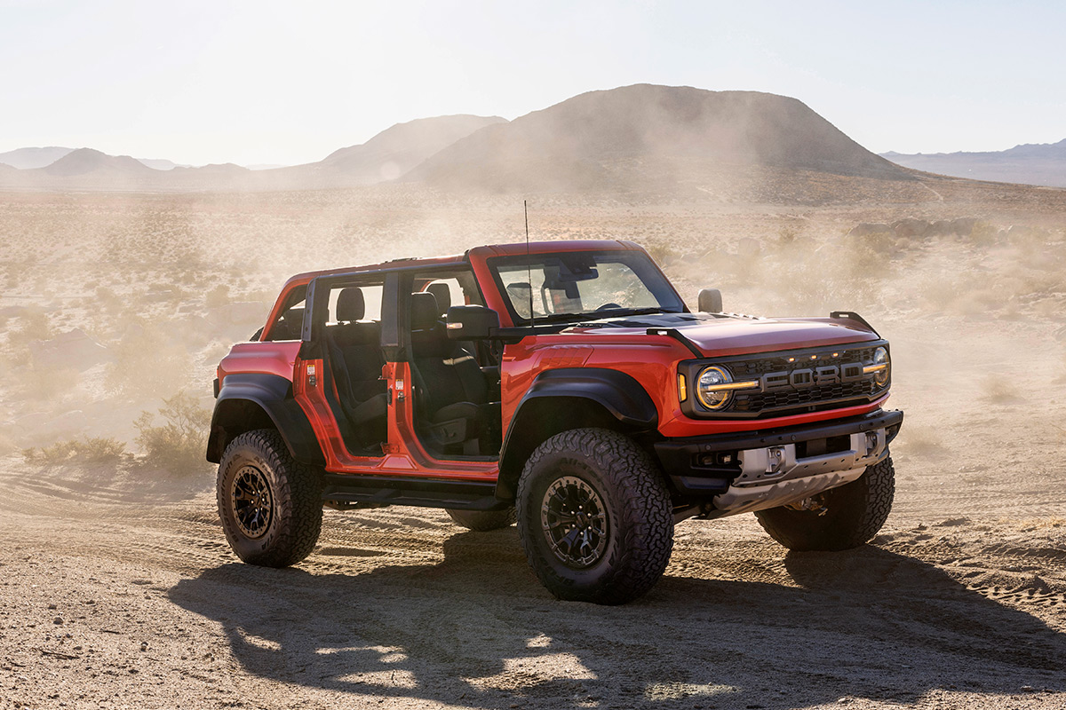 “We had to build the Bronco Raptor. It’s our ultimate vehicle for hardcore off-road enthusiasts who demand something more,” said Carl Widmann, Ford Performance chief engineer. “Like the Ultra4 desert race trucks, the ‘Raptor of SUVs’ conquers desert dunes at highway speeds and is equipped with competition-level off-road technology and hardware.”