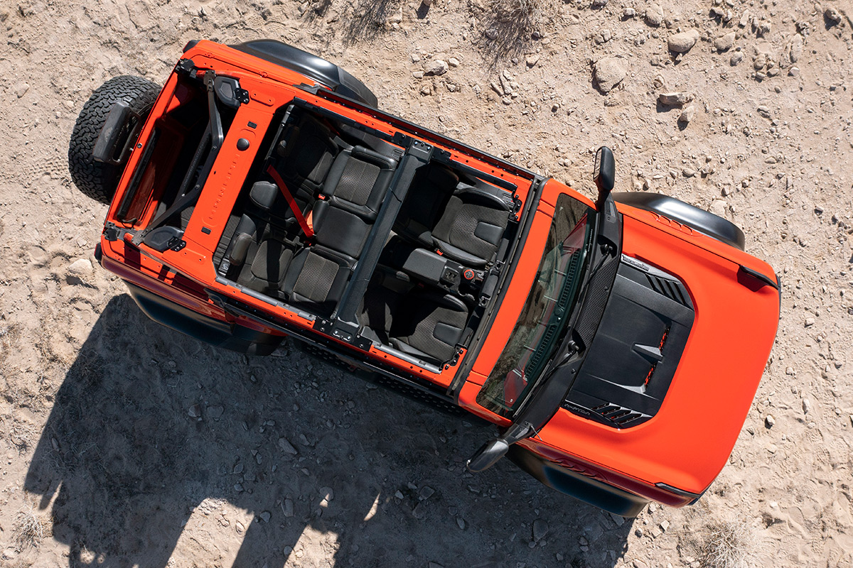– 9.8″ wider and 3″ taller than the standard Bronco