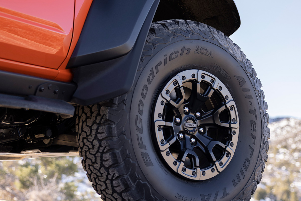 Parked next to a regular Bronco, you can really see the differences between the two vehicles. The Bronco Raptor design is pretty extreme. It’s muscular, while maintaining an underlying simplicity with performance-focused details added for outstanding high-speed capability.