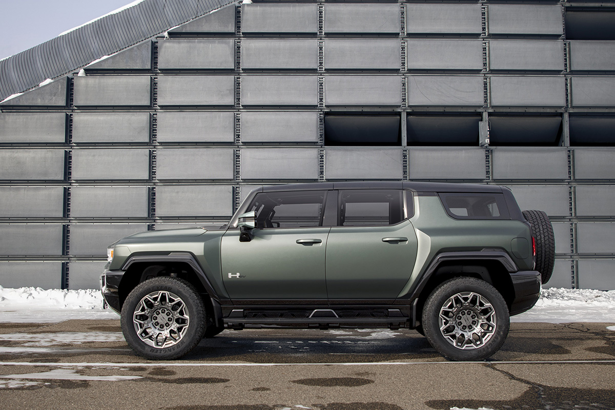 Expected best-in-class off-road proportions will help make the new SUV maneuverable, while also making the most of the HUMMER EV’s available signature features such as CrabWalk, Extract Mode and more. The SUV’s look remains rugged and includes a new rear design with mounted full-size spare tire. Inside, a similar five-passenger layout from the pickup remains and includes a large and useful rear cargo area.