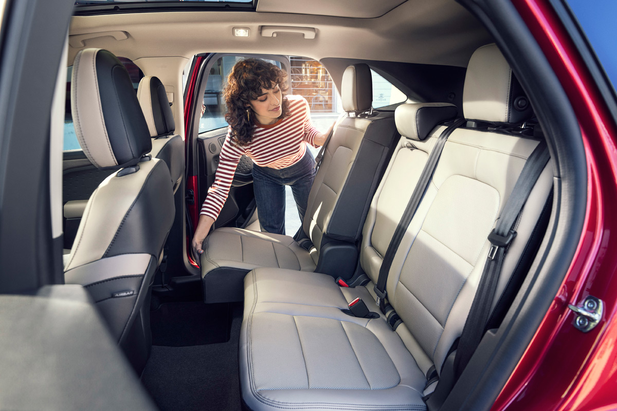 One of the more clever features on the new Escape is sliding second-row seats (in gas engine-powered models) that allow rear-seat passengers to enjoy best-in-class maximum second-row legroom with the seats in the full rearward position, plus increased knee clearance and footwell length for a more comfortable ride.