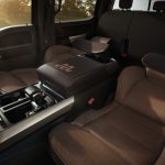 Creating the ultimate durable, anywhere office, F-150’s new optional Interior Work Surface gives you a large work surface which can be used for signing documents, working on a 15-inch laptop or enjoying a meal when parked. But what about the shifter that’s there? No worry, it easily folds into the center console with the push of a button. (Why they didn’t just go with a column shifter, dial shifter, or Lincoln’s piano key shifter? It seems like that would have been much easier, even if some customers prefer a console shifter.)