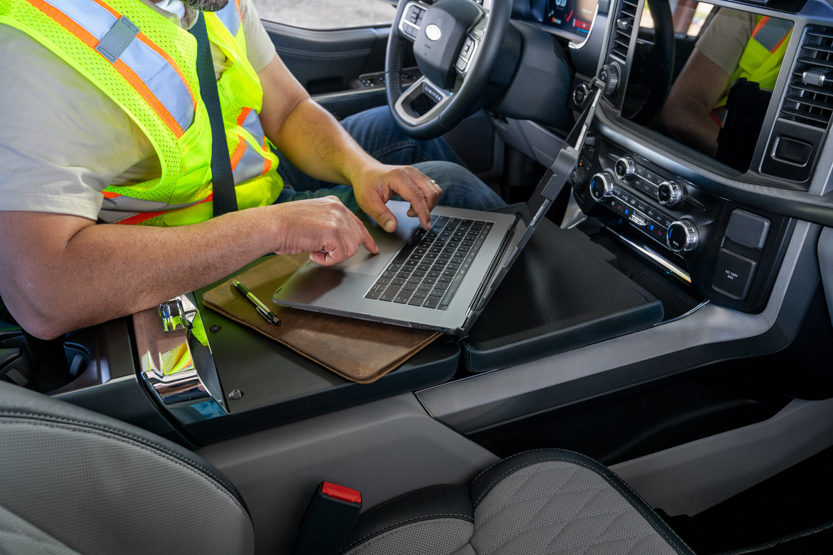 About a third of truck customers regularly use their laptops in their pickups, according to Ford, and even more eat in their trucks. So this is actually a great feature to have.