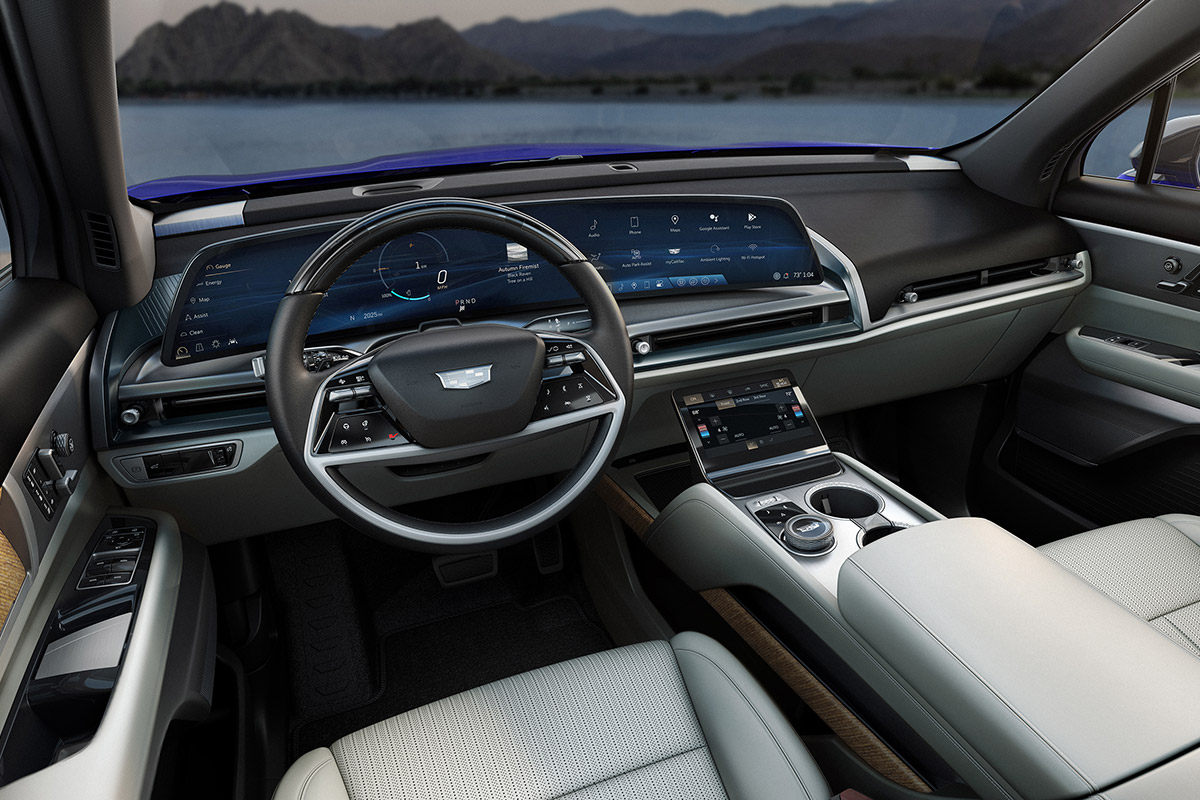“VISTIQ continues the Cadillac EV identity, including our signature vertical lamps front and rear, the illuminated pinstripe grille, a 33-inch diagonal high-resolution LED screen, and available 23-inch wheels, rendered in a proportionally stately and functional three-row SUV,” said Bryan Nesbitt, executive director, Global Cadillac Design.