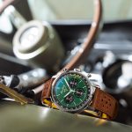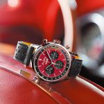 Both the Chevrolet Corvette and Ford Mustang versions get 42 mm cases housing the COSC-certified Breitling Caliber 25, a self-winding 1/8th of a second chronograph movement with a power reserve of about 42 hours. Both watches feature a tachymeter scale and three black contrasting subdials. Their dials display the car logos at the 12 o’clock position.
