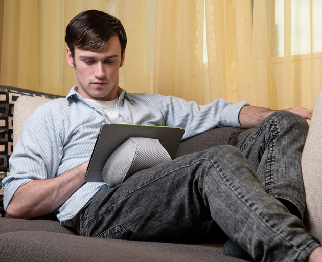 The iProp is light and portable at only 8 oz, and the unique non-slip, soft-to-the-touch silicone shelf provides the perfect amount of stability, without obstructing the tablet screen. There’s also a non-slip silicone pad on the bottom of the bag which provides grip on smooth surfaces. The iProp’s mesh bag will conform to any surface, providing the freedom to enjoy your tablet on both flat surfaces and soft and uneven surfaces such as sofas or the bed. Heck, it even works on your leg!