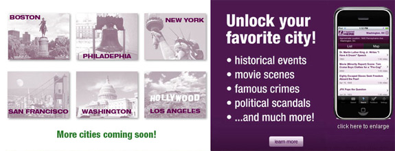 When you travel, you can easily purchase a new It Happened Here city from within the app!