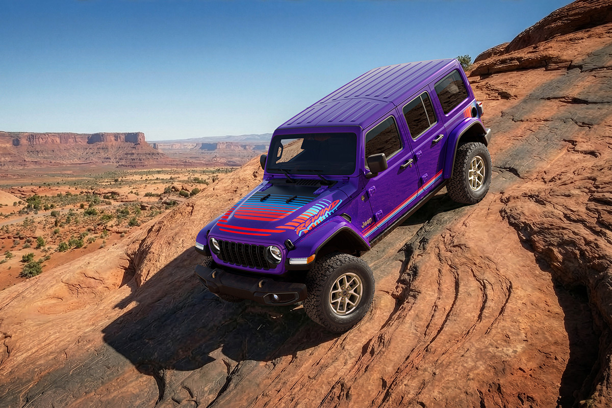 Jeep’s design team, many of whom grew up in this exact era, leaned hard into the nostalgia. Think bold geometric graphics lifted from early arcade games, the kind of patterns you’d find on a 1990s food court cup, and color combinations that feel like they were ripped straight off a pair of neon high-tops. The result is a Jeep that looks like it belongs on the cover of a mixtape and can still claw its way up a rock face on a Saturday morning.