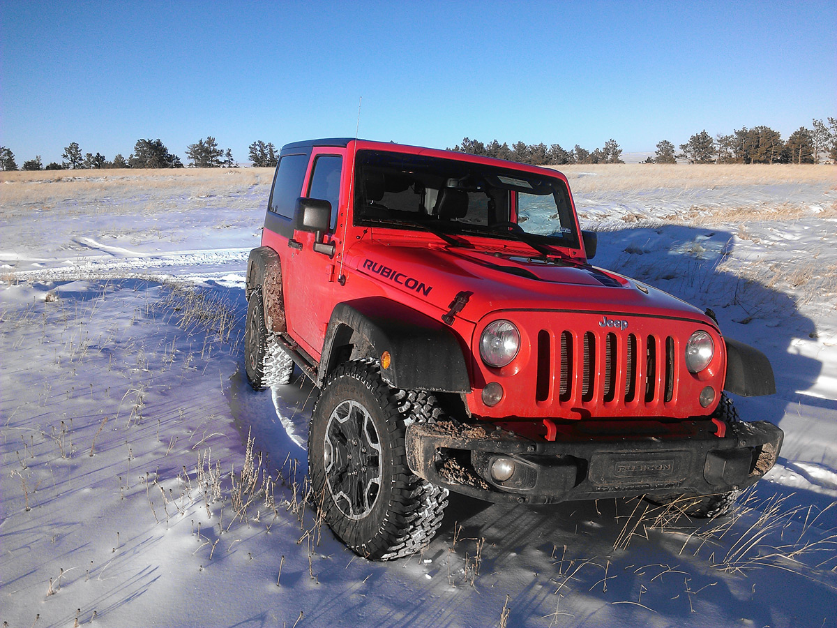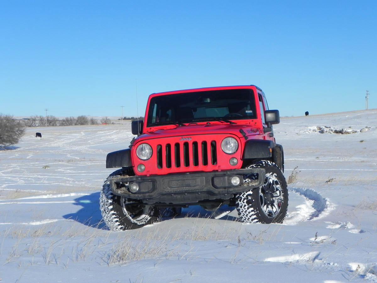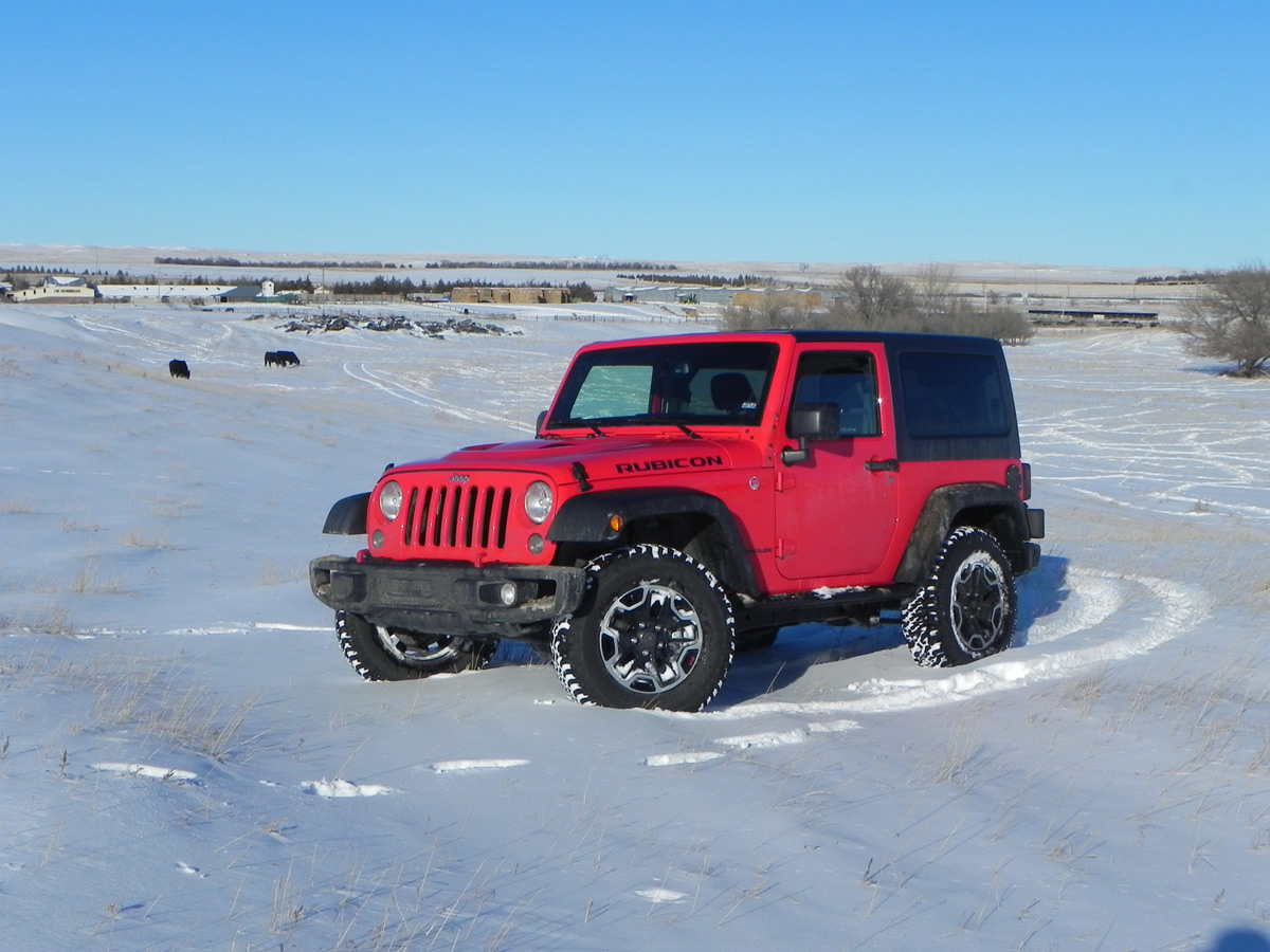 Since it’s winter here in the tundra and plains, there are a lot of places to go for those of us who enjoy burrowing tires into dirt and snow. I chose a nearby steer pasture just over the border in Nebraska. A friend has about 1,200 acres there where he turns his bulls loose during the winter. It’s hilly country and has a lot of variance to its terrain, most of which is now blanketed in soft snow that varies from a couple of inches to a couple of feet in depth. A perfect proving ground for a Jeep Wrangler Rubicon.