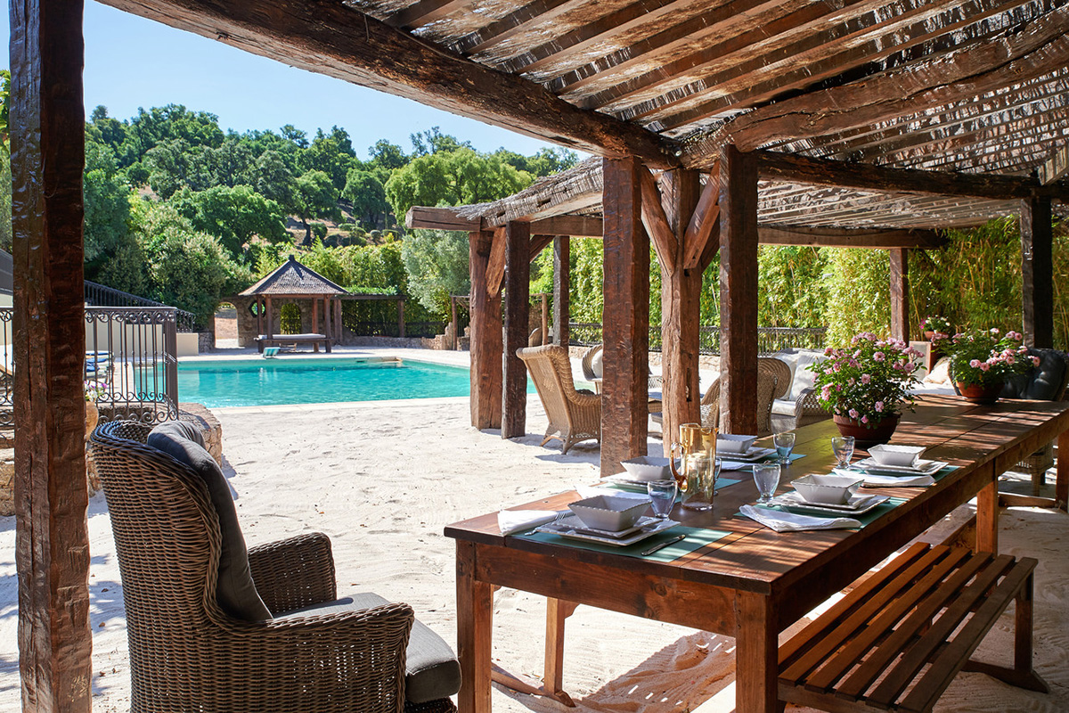 Depp has spent over $10 million in preserving the stone-and-wood-beamed structures without destroying their original features. Grounds include two swimming pools, a charming town square with lush landscaping and outdoor dining, a skate park, a full gym, a pirate lair, and a wine cave. Grounds are dotted with 300-year-old oaks, olive trees, and vineyards.