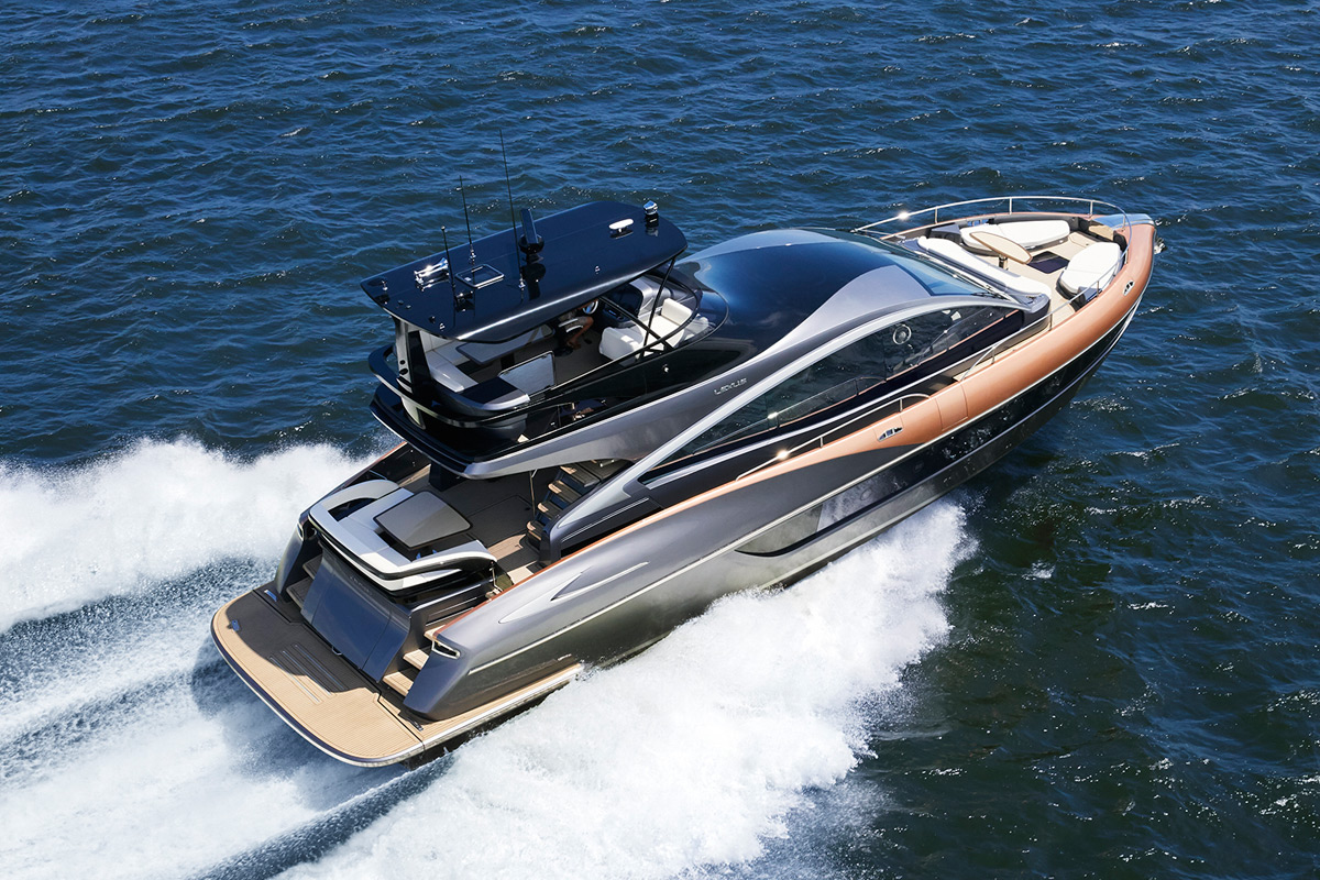 - The premiere yacht features an optional two-tone color scheme that highlights its one-of-a-kind form and captures the image of the Lexus Sports Yacht Concept from 2017. Metallic accents on the bow, side windows, and the vessel’s L-shaped air intakes create the iconic image of a Lexus yacht.