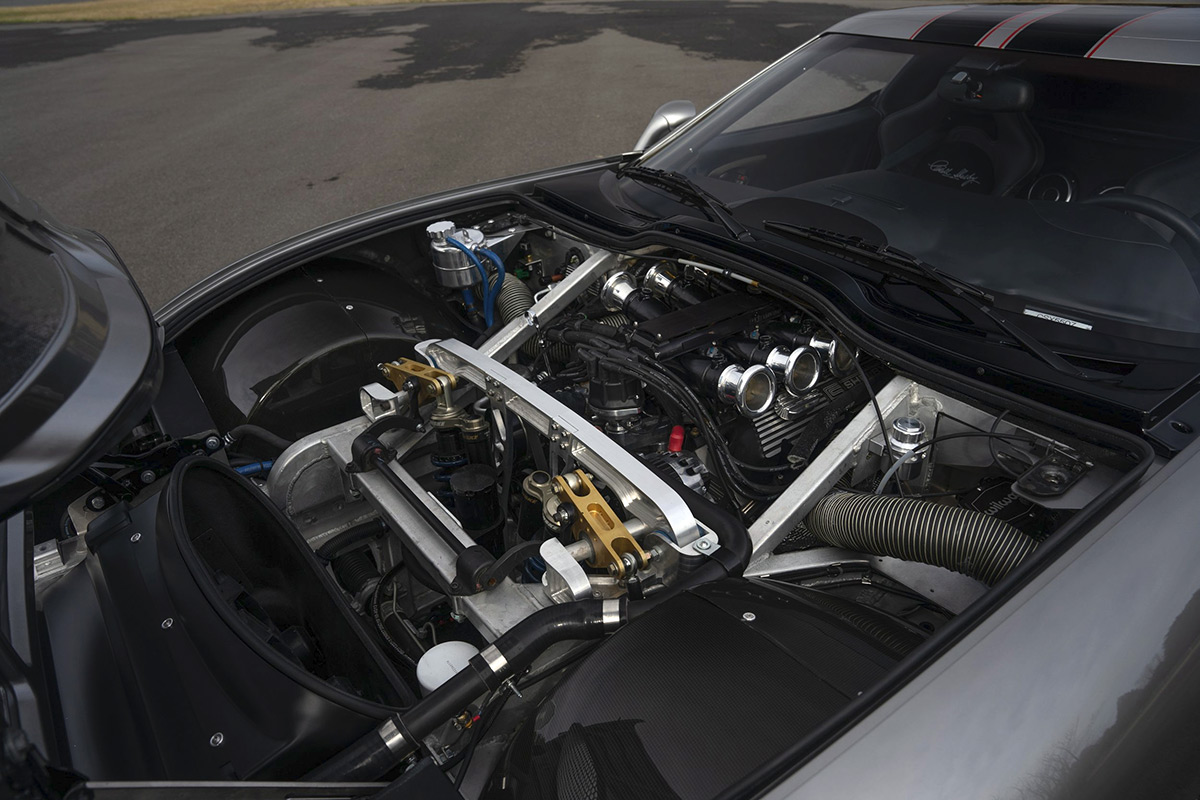 The roller can be configured for one of three powerplant options for finish by a company of the owner’s choice. Fans of internal combustion engines can mate a V8 through a torque tube to the 6-speed paddle shift sequential transaxle. Choices include a Carroll Shelby Engine Company 427 Windsor V8 or a Supercharged Ford Godzilla motor. WMS also has created a Performance EV package for those seeking a Shelby electrified sports car.