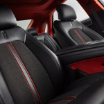 Center Stage, inspired by fashion and theater, is designed for the most expressive clients. The Jet Black interior is highlighted by a Foxfire Red headliner, capturing the drama of being in a dark theater with the impact of a rich, deep red accent color. Alcantara suede with uniquely designed perforation adds plush texture to the doors and seats.