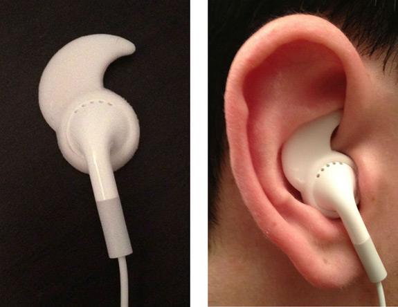 The problem with the iPod’s headphones is that they don’t stay put in your ear, the slightest movement of your head causing them to fall out. Most people get frustrated, toss them in a drawer somewhere, and buy another set of headphones.
