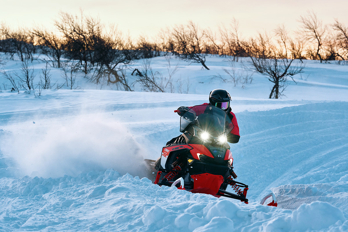 Design highlights on the Rangers include 4-module premium LED headlights for long polar nights, updated ergonomics for easier movement and more confident handling, and a clever flippable snow flap that reduces drag in deep snow and prevents the flap from getting trapped under the track when you’re reversing or unloading.
