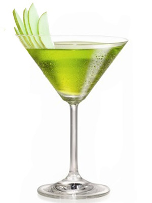 Combine all ingredients in a shaker filled with ice. Shake vigorously, strain into a martini glass, and garnish with thinly-sliced green apples.