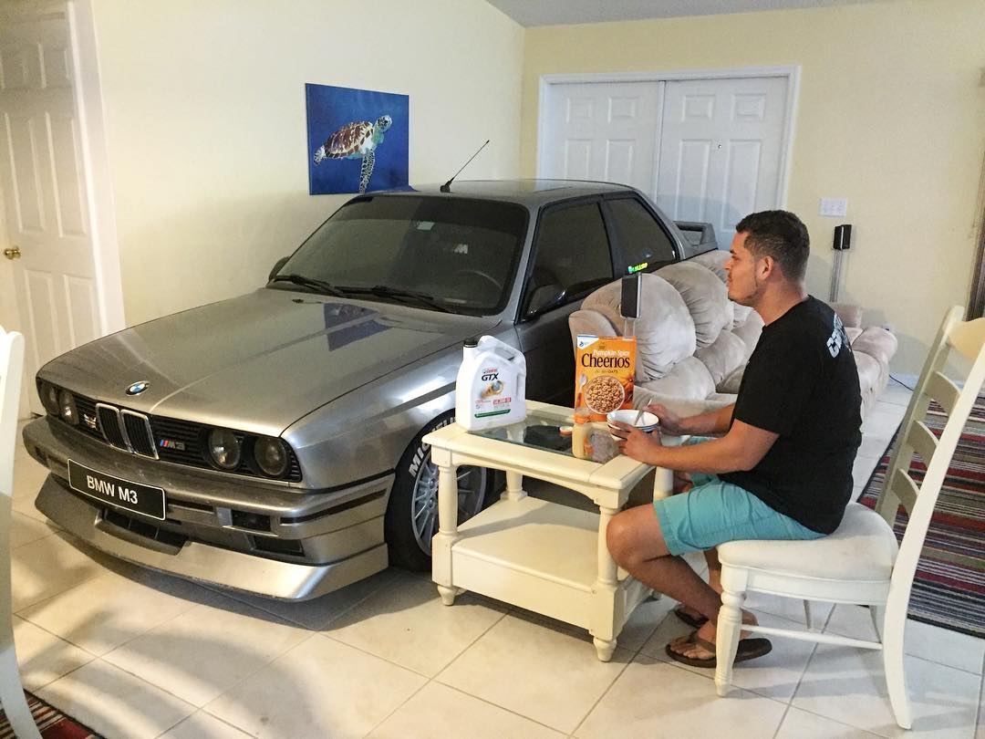 What do you do if a Category 5 hurricane is coming your way and threatening your precious BMW E30 M3? For Port Saint Lucie resident Randy Jalil, it was a no brainer – Park it in the living room, obviously!
