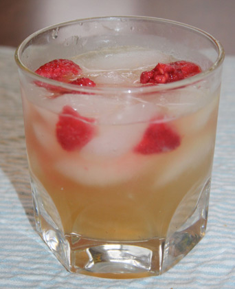 Muddle, shake with 3 ice cubes & strain into a highball glass over crushed ice. Garnish with fresh raspberries.