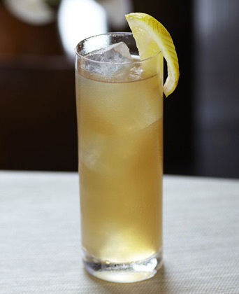 Shake, top with 1 oz. Club Soda & strain into a highball glass. Garnish with a lemon wedge.