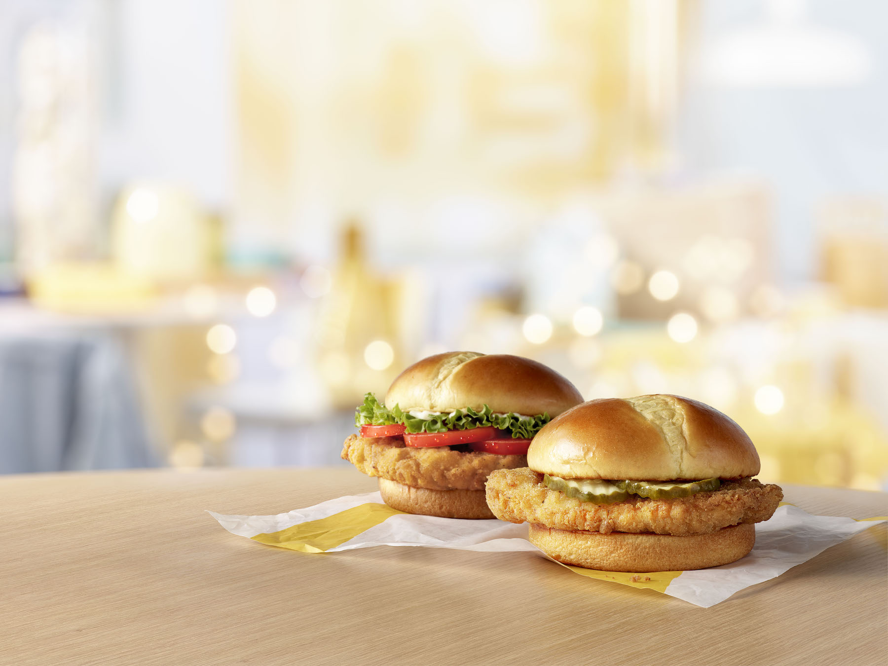 The Crispy Chicken Sandwich is a fried chicken fillet served on a potato roll topped with butter and crinkle-cut pickles, while the Deluxe Crispy Chicken Sandwich adds tomatoes, lettuce and mayo. And just like Chick-fil-A and Popeyes, the sandwiches are packaged in a foil bag.