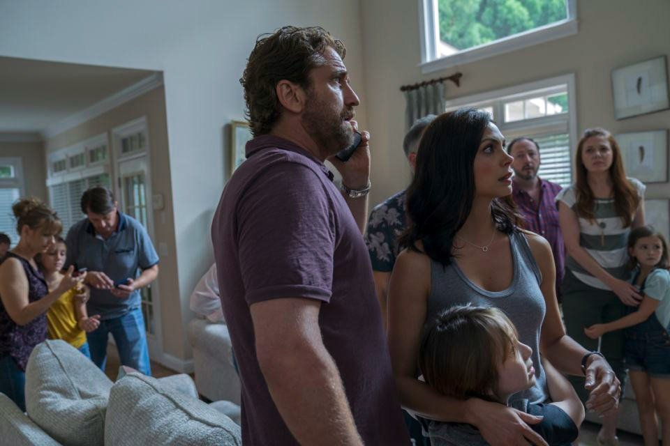 In Greenland, Butler plays John Garrity, a structural engineer who races to save his estranged wife Allison (Morena Baccarin) and young son Nathan as a planet-killing comet hurls towards Earth. Lucky for him, he receives a Presidential Alert on his phone, instructing him to hightail it to an Air Force base to escape to a secret sanctuary, as he’s been chosen to be saved.