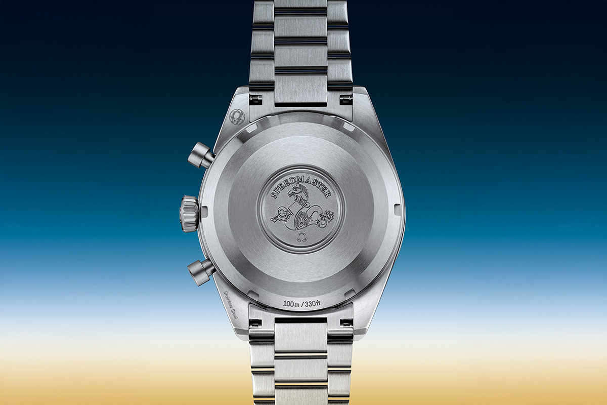 - Heritage Tachymeter Scale: The bezel’s matte aluminum ring is a nod to the Speedmaster’s history, including the iconic “Dot Over Ninety” detail.