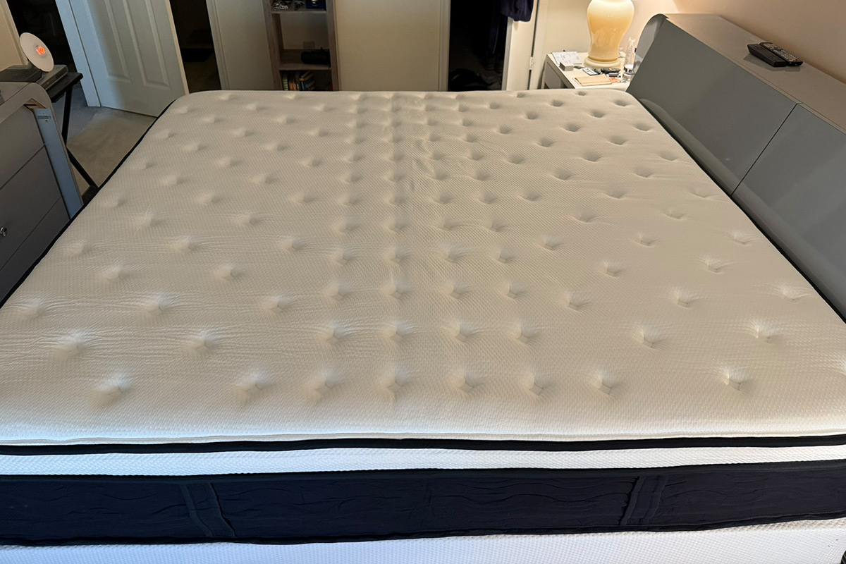 Given that I live in a second-story condo and the King mattress weighs 130 pounds, I had to get my neighbor to help me bring it up into my place. But that was honestly the hardest part of the whole thing. After removing the old mattress, we placed the new mattress on my boxspring (it can also be put on the floor or on a platform bed) and removed it from its plastic protection, at which point it quickly expanded, reaching its full shape (76″Wx80″Lx14″H) in just minutes.
