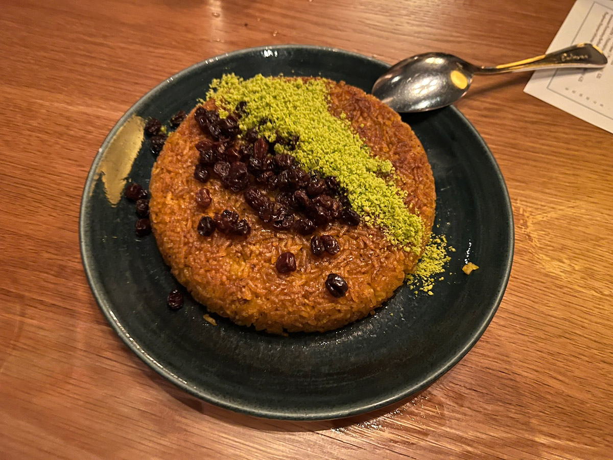 Then it was time for the entrees. Naturally, we got the Pomegranate Lamb Shoulder, as that’s Mike Solomonov’s signature dish: a whole-roasted, falling-apart lamb shoulder that has been dry-aged, smoked, and glazed with pomegranate molasses, served with crispy Persian wedding rice. So juicy and flavorful, I can see why the lamb shoulder is so popular!