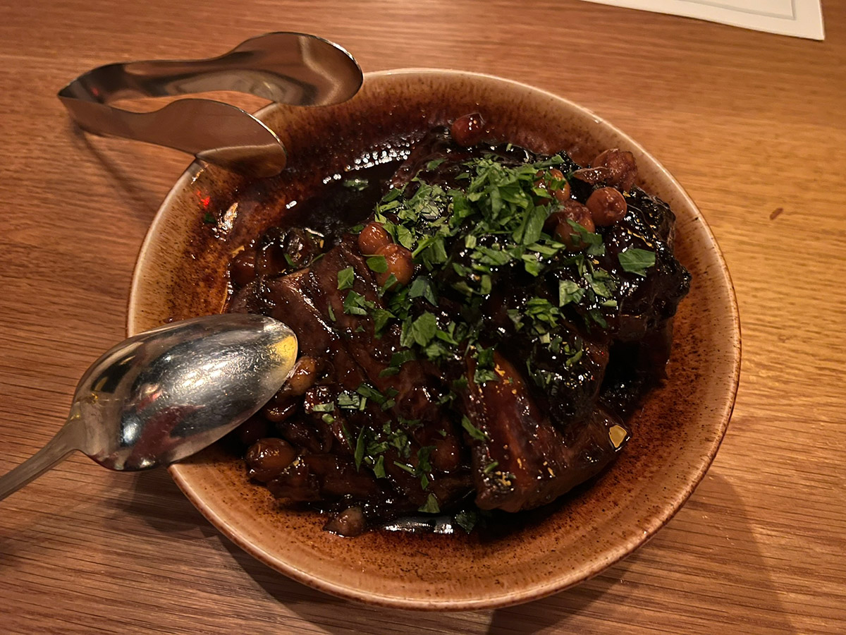 The Smoked Chicken (with Shipka Peppers, Za’atar and Tehina) was another surprise hit for me, just full of flavor and cooked perfectly, nice and juicy. As for the Yemenite-Style Short Rib (with Braised Greens and Confit Potatoes), I had high hopes for this, as I’m a short ribs fan, but as you can see from the photo, it was pretty dry and flavorless. Needless to say, I mainly stuck with the Lamb and Chicken, of which there was plenty. Controversial take – While both dishes were great, I think I actually liked the chicken more than the lamb.