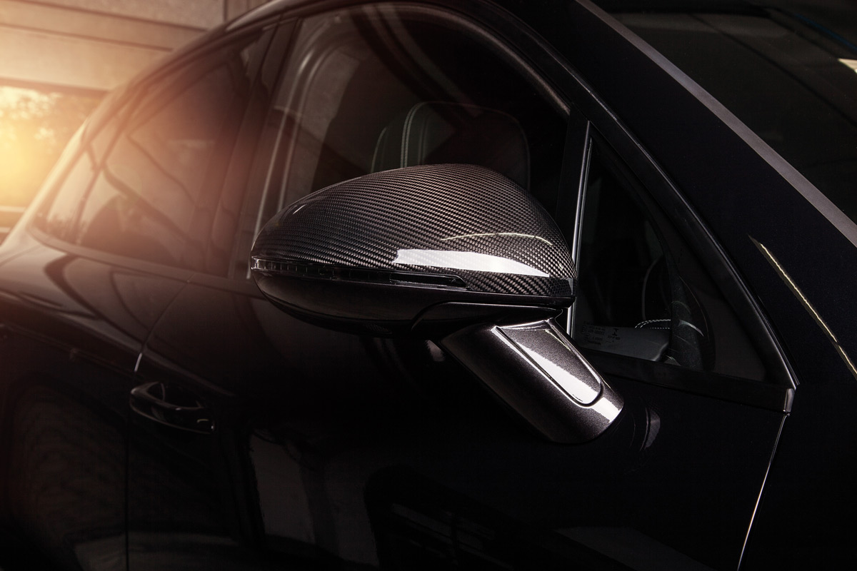 TECHART’s Carbon Sports Package is characterized by low weight, precise surface finishing and individual design options. The TECHART Duct Trim at the Porsche Macan Turbo’s vehicle front, as well as TECHART Side Mirror Trims and the TECHART Roof Spoiler for all Porsche Macan models are available in carbon fiber. Design trims in attractive accent color open up countless opportunities of personalization. Through TECHART Individual Paint, standard vehicle elements like fog light trims, air intake uprights, front wings or side blades fit seamlessly into the desired play of colors.